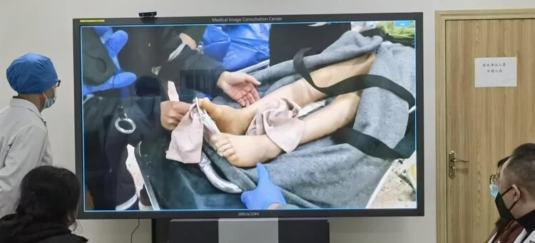 抬手、伸腿、翻身,按照市七医院医生的指示,张教官和当地医生一起检查了Ashly身上的损伤。Rokid AR眼镜实时传输画面,成都的医生们犹如在现场一般,可以实时检查患者伤情。此外,数张骨折拍片,通过眼镜被一张张传回中国,供医生们了解更多详细病情。