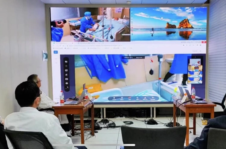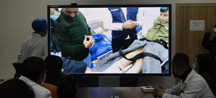 此时,远在万里之远的叙利亚哈马省Suqaylabiyah国立医院里,来自中国的战术救援教官张教官,正佩戴AR眼镜,按照市七医院专家指令,指导国外患者配合看病。
