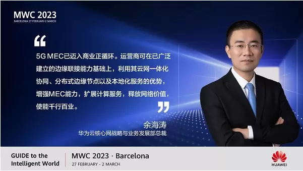 在MWC23巴塞罗那期间,华为云核心网战略与业务发展部总裁余海涛在主题为ADAPTING TO NETWORK DEMANDS ON THE EDGE的论坛会议上发表了名为《5G MEC使能行业数字化》的演说,他认为5G为行业数字化带来了巨大的市场空间,而MEC是打开这个市场的入口。据预测,到2035年5G赋能工业数字化市场空间将达到13万亿美元。MEC将持续发挥“联接+计算”的功能,在现有的联接能力上做好规模复制的准备,同时深入探索其在边缘计算方面的巨大潜能。