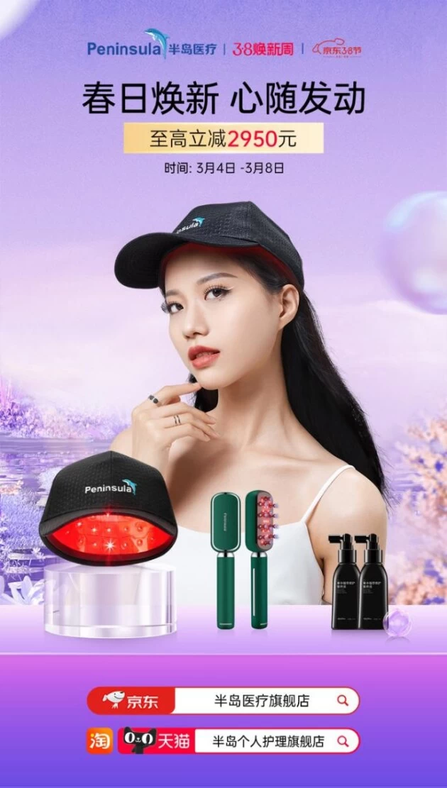 作为深耕医美、女性健康和个人美容护理领域多年的企业,半岛医疗是国家级专精特新“重点小巨人企业”,其研发团队拥有14年医美设备创新研发经验。公司产品覆盖国内85%的官方医院,并遍布全球70余个国家和地区。在国内公立医院有其大型的医美仪器和设备,如第4代黄金微针、半岛超声炮、6D黄金微雕、AI温控射频、FemeTite黄金私密、舒敏治疗仪等一系列产品。同时,半岛医疗将医用尖端技术应用到家用消费场景,家用白癜风治疗仪、家用激光生发帽、半岛魔法梳等,极大地满足了消费者的日常所需,实现技术同源、体验共享。