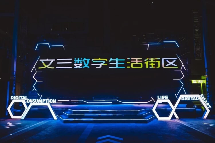 科幻般的全息星球、黑客帝国中的信息瀑布流、超次元的赛博数字人、斑斓霓虹的商店招牌……位于杭州市西湖区的黄金地段,杭州文三元宇宙AR数字生活街区,正在为消费者带来全新的城市空间体验。
