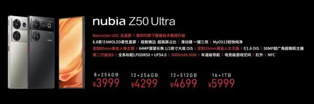 努比亚Z50 Ultra正式发布 第四代全面屏 黄金双焦段