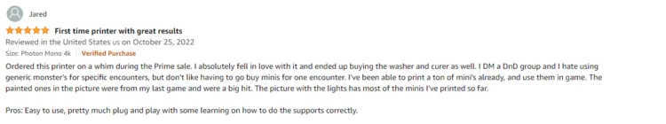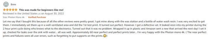 “我对Photon Mono 4K非常满意,这就是为我这样的初学者设计的”,亚马逊用户对Photon Mono 4K给予了这样的高度评价。