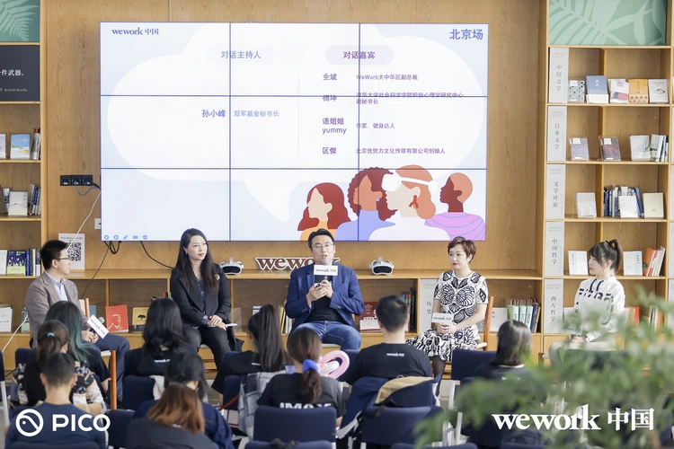 北京场活动现场,WeWork大中华区副总裁全斌、清华大学社会科学院积极心理学研究中心副秘书长杨坤 、作家及健身达人语姐姐yummy 等嘉宾,围绕话题「女性发展和职场健康」展开对谈。“公平、健康的职场环境,可以激发女性更持续的潜能,WeWork在关注职场女性健康及成长方面,做了很多切实的努力。”WeWork全斌如是说。而除了社会层面的关注及赋能外,女性自身也需要探寻更悦己、松弛的状态,掌握好职场与生活的平衡感。所以在健身达人,也是PICO深度用户的@语姐姐yummy看来,"运动不仅能让自己获得成就感,其释放的多巴胺还能提升生活的幸福感”。