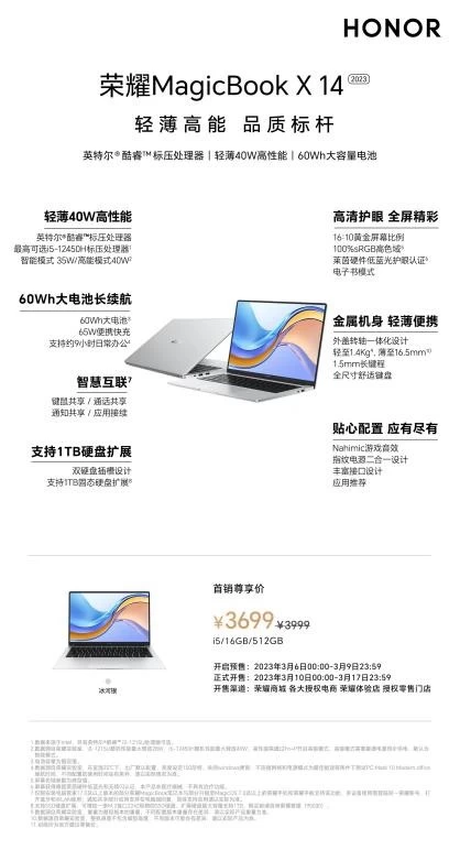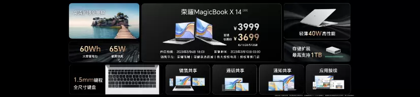 轻薄高能大存储:荣耀MagicBook X 14笔记本2023正式开售,首销尊享价3699