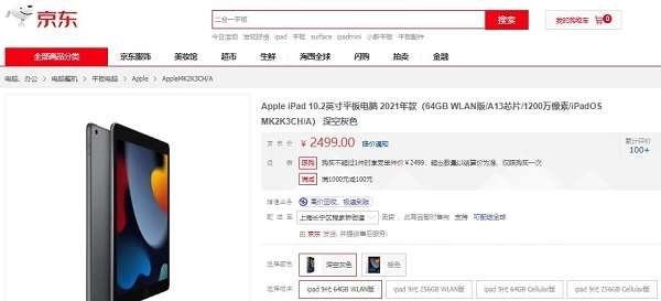 北京消费者速看!京东买手机可叠加消费券 iPad 10.2英寸2021年款2199元起