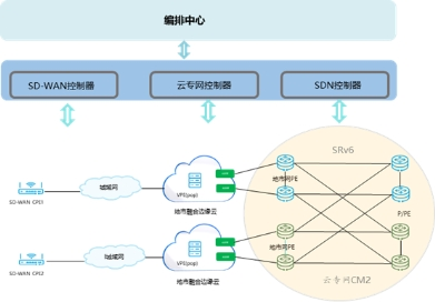 此方案以原有SD-WAN网络为基础,通过编排中心与业务门户对接,实现云专线业务的自动编排、自动配置功能,达到零接触开通目标。为下一步云专线业务大规模部署奠定坚实基础。