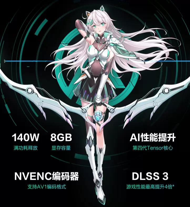 DLSS 是 AI 驱动图形领域的革命性突破,可大幅提升性能。DLSS 3 由 GeForce RTX 40 系列笔记本电脑GPU 所搭载的全新第四代 Tensor Core 和光流加速器提供支持,可在不影响画质和响应速度的前提下,利用 AI 创造更多高质量帧。