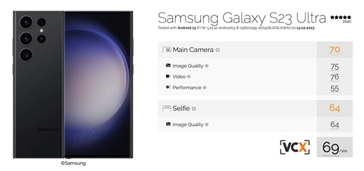 三星Galaxy S23 Ultra不仅备受消费者的喜爱,也获得了专业机构的广泛认可。近日,在全球知名摄影论坛VCX网站公布的智能手机影像榜单排名当中,三星Galaxy S23 Ultra凭借着出色的综合表现,获得了最高级别的五星评价,并以总分69的成绩在众多机型当中拔得头筹。