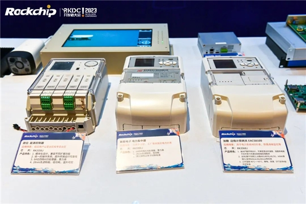 在开发者大会现场,展示了多款电力产品智能化成果。其中,新联电子电力集中器,采用的是瑞芯微RK3358J芯片,适用于小区、工厂等场景的电力抄表。RK3358J芯片采用64位Cortex-A35处理器,具有算力高、低功耗的特性,可满足国网测试新标准。
