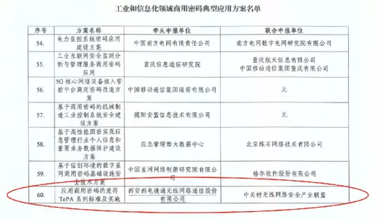 虎符TePA系列标准及实施入选“工业和信息化领域商用密码典型应用方案名单”