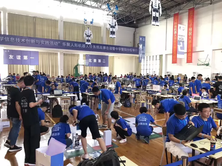 7月30日,NOC “全国中小学信息技术创新与实践活动” 乐聚人形机器人任务挑战赛在浙江诸暨隆重举办。大赛由教育部基础教育司、教育部教师工作司支持,中央电化教育馆指导,中国教育技术协会、中国发明协会主办,中国信息技术教育杂志社、创新时代杂志社、诸暨市教育局、诸暨市科学技术协会、诸暨中学教育集团暨阳分校、乐聚(深圳)机器人技术有限公司、乐聚星原力(诸暨)教育科技有限公司承办。中国教育技术协会学术委员会副主任潘克明,诸暨市市委常委、副市长陈仁坚,中国人工智能学会机器人文化专业委员会主任、哈工大多智能体机器人研究中心主任朴松昊、苏州大学机器人与微系统中心副主任、教育部新世纪人才陈立国等专家领导出席了大赛的开幕式。
