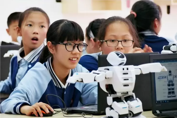 图:浙江行知小学学生在进行人工智能编程教育学习