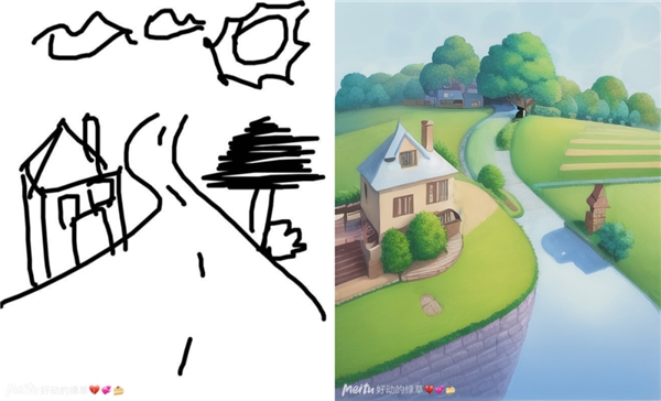 而日前,具备影像核心能力的美图,在推出AI绘画功能后又推出了全新一代的 “AI简笔画”功能,相较于上一代AI绘画应用基于文字关键词理解用户意图的玩法,“AI简笔画”可基于多模态图像识别与生成技术,自动识别用户简笔涂鸦原图的主体结构及内容,基于此对用户绘画意图进行洞察再智能拓展生成色彩、光影、细节、背景等要素,整个过程用户不需录入关键词,这一功能上线后迅速成为美图应用的爆款功能,日均生成图片已达到100万张。