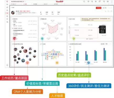 用友BIP人才画像服务围绕人才标签、人才盘点、绩效、人员信息和任职信息,全面追踪人才发展轨迹、多维标签标记人才特质和能力,全面解析企业人才数据,帮助企业精准定位人才、识别人才,助力团队协作和战略达成,构建面向未来的人才画像,实现管理价值和管理决策可视化。