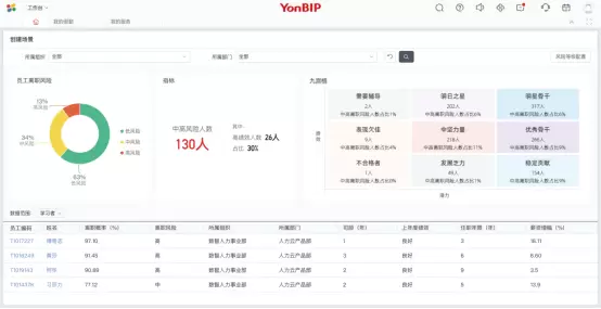 离职预测:离职预测分析,可以帮助企业提前准确识别高离职风险员工,让HR与管理者在员工绩效管理、人才培养、梯队建设、选拔调配、组织氛围、关键人才留用中以更有效的时机、更妥善的策略来开展工作。