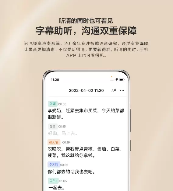 这样的提议背后有着深刻的现实依据——与人们的日常印象相反,听力残疾者中口语使用者的占比要远远高于前者。另外,听力下降的老年人也多用口语交流,所以文字对他们来说是一种很重要的认知世界的方式。也正是出于对听损人群的生活习惯的了解,科大讯飞发布的智能助听器系列都配置了“字幕助听”功能,基于专业的语音转写技术,将对方说的话实时转写为文字,让听损患者在听清的同时也能看清,双重保障带来更安心的体验。