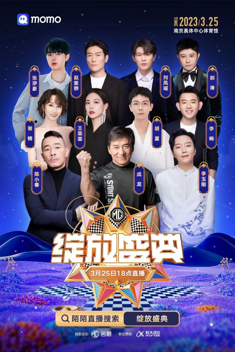 3月25日,由“新生代进阶运动轿跑”MG5天蝎座独家冠名,由“出国不怕语言不通”讯飞翻译机、“纯净人声 一键降噪”讯飞智能无线麦克风联合赞助的陌陌直播绽放盛典将在江苏南京奥体中心体育馆隆重启幕。国际巨星成龙、陈小春、胡夏、李玉刚、王霏霏、张洢豪、赵紫骅、刘凤瑶等实力明星将会跨界助阵,与陌陌主播同台献艺。同时,李响、谢楠、郭涛三人也会组成主持天团,与主播、明星一起共同为万千网友带来一场文化娱乐饕餮盛宴。