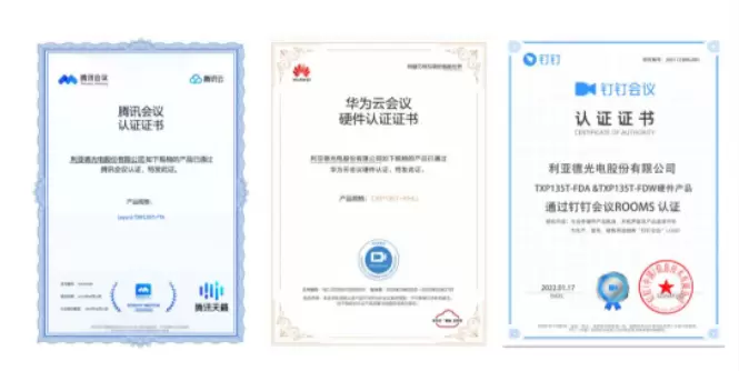 在生态层面,利亚德积极开放硬件平台,强强联合打造会议产品“生态圈”,兼容更多领域的软件技术力量。成为目前业内首家、也是唯一一家LED会议一体机产品同时获得“腾讯会议认证证书”“华为云会议硬件认证证书”“钉钉会议Rooms 认证证书”的企业。利亚德与腾讯会议联合发起“万室如意”“千屏免费试用”计划,通过打造企业现代化“如意”会议室,解决企业开会“难”的问题,从而推动视频会议产业变革与市场发展。