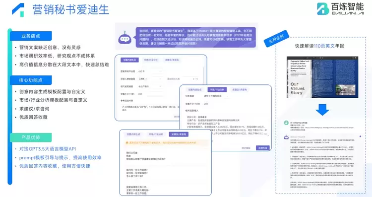 营销文案缺乏创意、市场调研效率低、高价值信息过于分散......为了帮助企业市场人员解决这些难题,B2B智能营销公司百炼智能正式上线了营销秘书爱迪生。