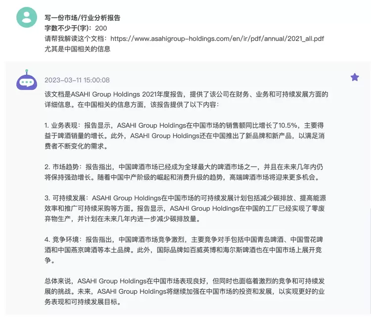 用户选择或自定义分析框架(如4P框架)和字数要求后,只需输入目标行业、公司、产品等信息,就能快速获取目标公司发展历程、业务情况、业绩表现、竞对分析、对外投资、未来发展等多维度的信息,市场研究效率大大提升。如果对于数据分析更关注,用户还可以选择是否结合丰富的数据指标。