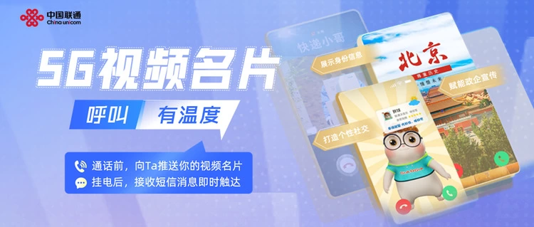 中国联通视频名片打破陌生来电之间的“壁垒”,打造“看得见的身份”,让呼叫更有温度,让呼叫更有个性化。速速搜索“5G视频名片”小程序,即刻体验5G新通信新功能玩法。
