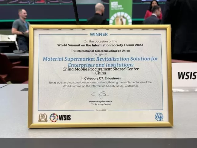 3月14日,2023年信息社会世界峰会(WSIS)颁奖盛典在瑞士日内瓦举行,中国移动提交的《企事业单位“物资超市”盘活解决方案》获得最高项目奖(Winner),这是国内企业在本次峰会获得的唯一大奖,也使得中国移动成为国内唯一一家三次获得最高项目奖的单位。此外,中国移动提交的《基于无线网络优化行为学习的自主网络平台》获得杰出项目奖(Champion),《老年人健康服务体系》在本届新增的健康老龄化创新奖中获得优秀奖。