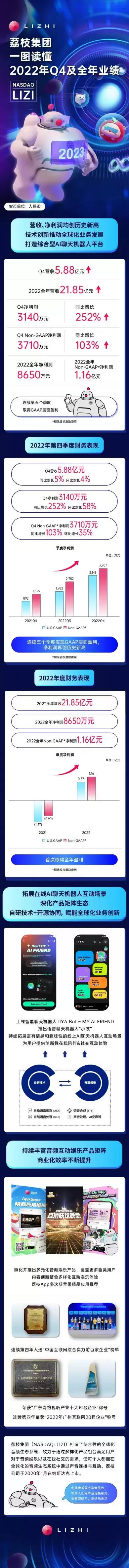 一图读懂荔枝2022年Q4及全年财报,全面推进AI聊天机器人业务