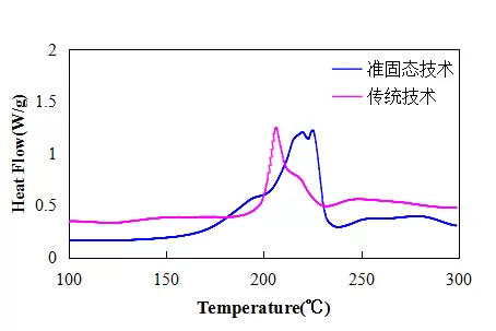 1. 差示扫描量热(DSC)测试显示,相较于传统电池100%SOC正极极片,采用固态电解质表面修饰技术的100%SOC正极极片,其热分解温度由206.5℃提升至225.1℃: