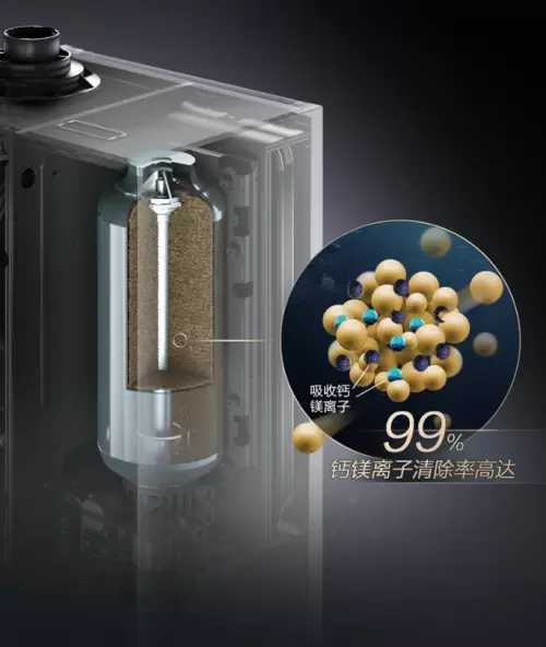 首创专利热水软水集成系统*3,将零冷水燃气热水器和软水机合二为一,用更精致的产品外观凝聚沐浴美容新能量。高效钙、镁离子置换技术让硬水乖乖变“软”,食品级树脂微粒牢牢吸附水中的钙、镁离子,同时置换出功能离子,美容软水由此诞生:水质硬度≤17.1ppm*4,符合NSF国际软水机水质标准。