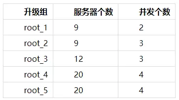 表1. 升级组并发信息