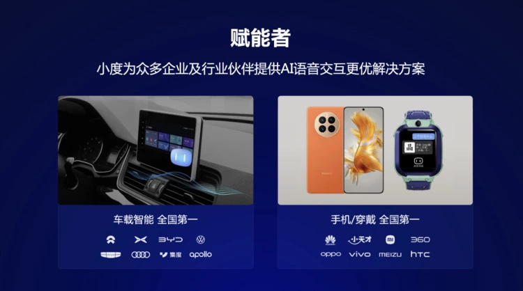 另一方面,小度也在持续为众多企业及行业伙伴提供AI语音交互更优解决方案。截至目前,小度助手可以控制的IoT智能家居设备已超过2亿台,品类超过70个,全球拥有超1500个合作伙伴,在移动穿戴、家庭、车载、酒店地产行业均做到全国第一。