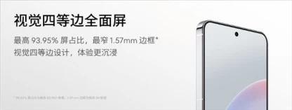据介绍,新机正面搭载了一块视觉四等边全面屏,最高屏占比达到93.95%,最窄1.57mm边框,视觉上极其震撼。