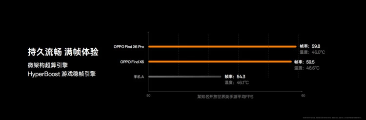 借助天玑9200强劲的GPU Immortalis-G715,搭配OPPO微架构超算引擎和HyperBoost游戏引擎,OPPO Find X6的游戏性能和能效表现同样强悍。在某知名开放世界类手游测试中,OPPO Find X6平均帧率达到59.5帧。