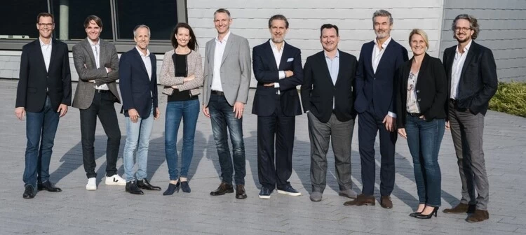森海塞尔集团全新管理团队由联合首席执行官、EMB和 EMB 扩展团队组成(从左到右分别为):Steffen Heise、Markus Redelstab、Andreas Sennheiser 博士、Yasmine Riechers、Andreas Fischer 博士、Ralf Oehl、Greg Beebe、Ron Holtdijk、Mareike Oer、Daniel Sennheiser