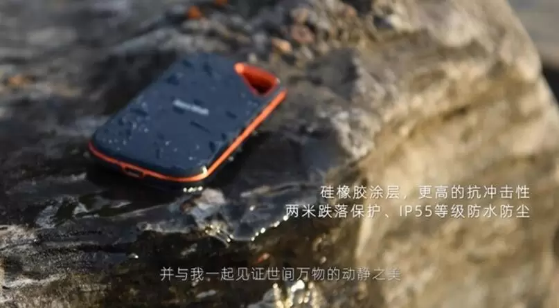 珍贵素材的保存同样重要,闪迪E81也是严苛环境下内容存储的理想之选。硅橡胶涂层的设计能够提供更高的抗冲击性,具备两米的跌落保护和IP55等级防水防尘[6],能抵御雨水、飞溅物、溢出物和灰尘,还可以防X射线、防震[7],足以应对各种环境挑战。对庄言来说,长途跋涉、翻山越岭的辛苦,终究会被拍到一张满意照片的喜悦所冲淡,将视频和照片备份至闪迪E81中,就像是珍藏起这份来之不易的喜悦。