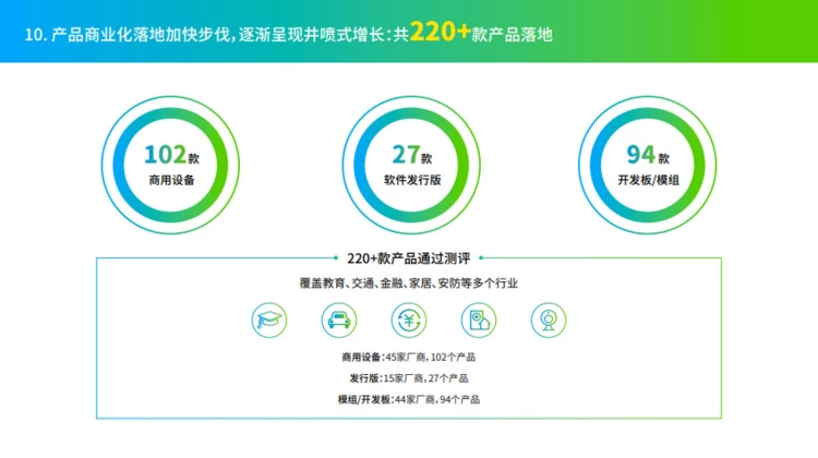 截至2022年12月31日,OpenHarmony正面向多个行业迈进,在220多款通过OpenHarmony兼容性测评的产品中,有102款商用设备、27款软件发行版,以及94款开发板/模组。