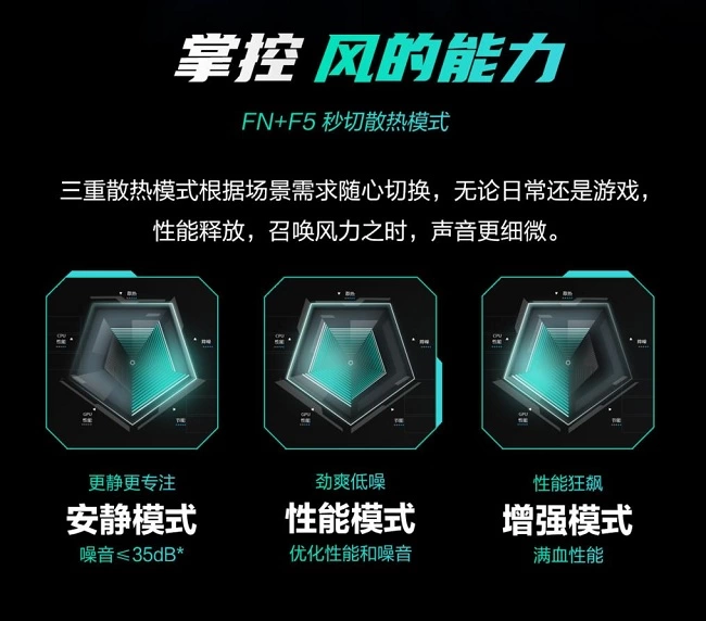 为保证硬件配置拥有稳定“战力”,天选4锐龙版采用了冰川散热系统。84叶片双Arc Flow风扇加持下,气流量提升13%,可助内部热量快速排出,5热管覆盖核心硬件区域,实现强效导热,D壳的多路进风可获得充足冷却气流,再搭配四出风口设计,即使长时间酣战3A大作,也不会出现降频、卡顿等现象。用户还可通过“FN+F5”组合键在安静、性能、增强三种模式之间切换,游戏竞技、深度创作以及安静学习等使用场景都能满足。