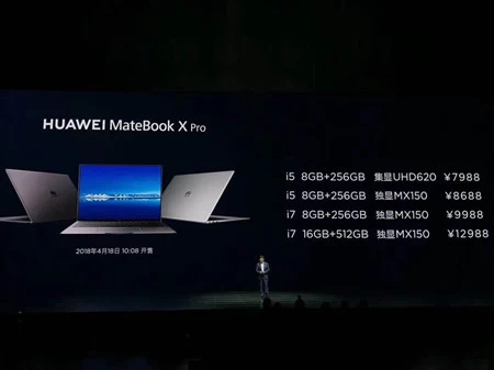 4月12日下午消息,华为今日在国内正式发布了全球首款全面屏笔记本电脑MateBook X Pro,起售价为7988元。
