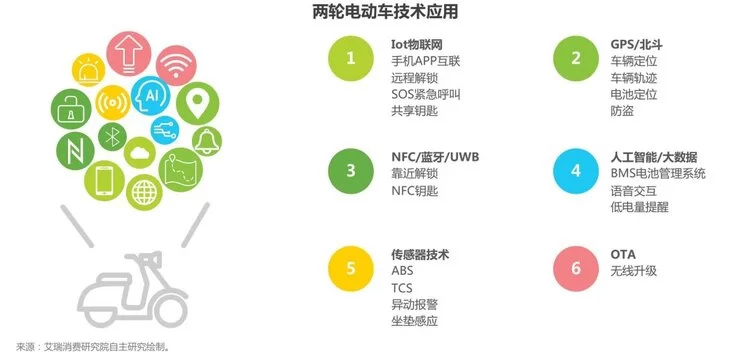随着两轮电动车进入智能化时代,搭载多种智能功能的车辆不断出新,通过Iot物联网技术实现车辆远程解锁、手机APP互联、家庭共享钥匙等,定位技术的运用让车辆防盗更进一步,比如车辆定位、电池定位、轨迹记录;NFC/蓝牙/UWB等技术使得车辆解锁方式变的多元化和人性化;人工智能运用大数据计算可以更好的实现电池安全提升与精准续航;OTA技术实时更新车辆功能,保证用车体验,各类传感器的加持,让用户控制车辆更加便捷;多重技术的运用为两轮电动车的全面升级提供了助力。