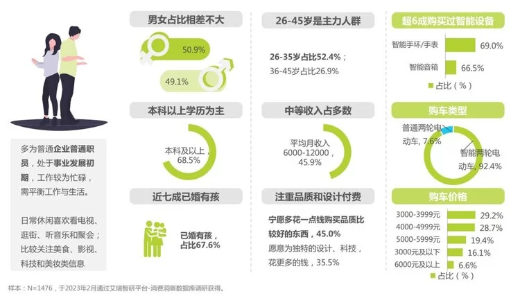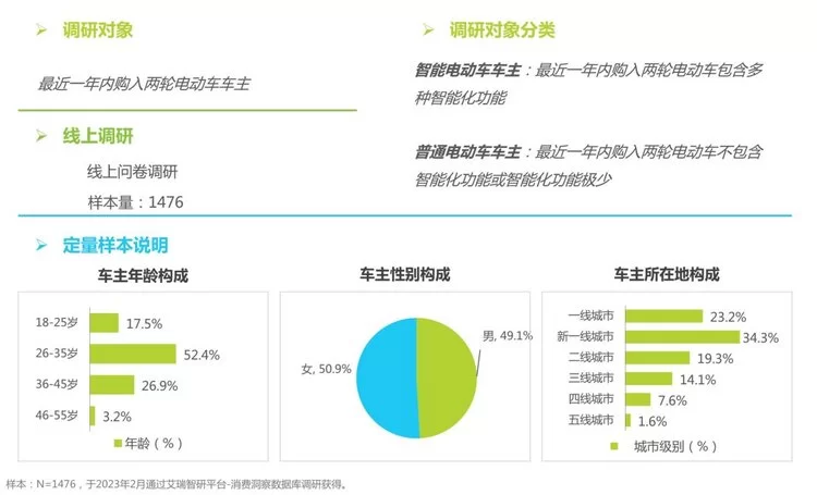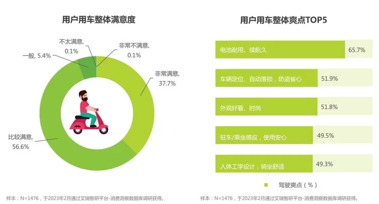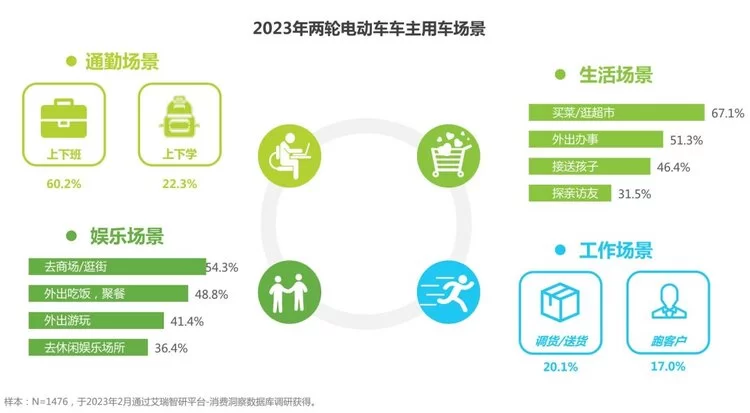超6成车主使用两轮电动车上下班和买菜/超市,短途通勤和生活场景是最常见的用车场景。