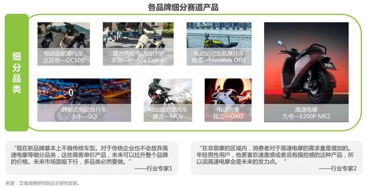 现阶段两轮电动车代步、工具的属性仍旧明显,但随着用户群体的年轻化,玩乐属性逐渐凸显,很多新晋品牌会针对玩乐属性开发新产品,在满足细分人群需求的前提下,也可避开与头部传统品牌直接竞争。未来随着用户需求的多元化,细分品类逐渐崛起,相信越来越多的品牌会通过开发新品类,实现全品类覆盖,提升市场占有率与品牌竞争力。