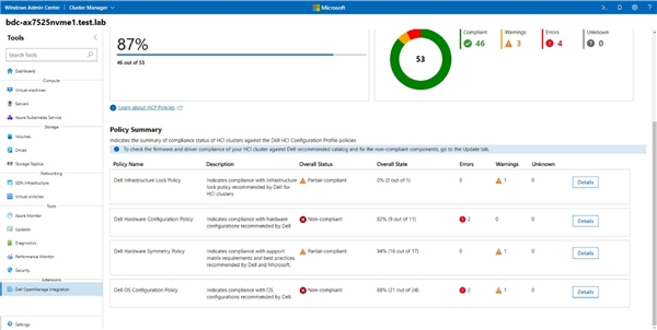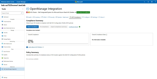 Dell HCP策略是为“与Windows Admin Center (OMIMSWAC)相集成的Dell OpenManage”新开发的特性。使用该特性,我们能将Dell HCP策略定义集成到Azure Policy。Dell HCP提供了技术规格,其中为Azure Stack HCI和“来自戴尔、基于Windows”的HCI提供了最佳实践和推荐配置,使Dell HCI解决方案能够实现更高的弹性和性能。
