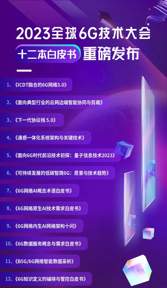 大会期间,围绕当前6G焦点话题,未来移动通信论坛发布了多本重磅白皮书,包括《ICDT融合的6G网络3.0》,《可持续发展的低碳智简6G:愿景与技术趋势》,《下一代协议栈5.0》,《通感一体化系统架构与关键技术》,《面向典型行业的云网边端智能协同与剪裁》,《面向6G时代前沿技术初探:量子信息技术2023》。