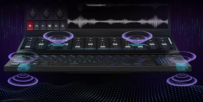冰刃7双屏最高搭载64GB双通道DDR5高频内存,可选4TB PCIe 4.0 SSD,带来T0级别存储体验。单键RGB影刃键盘支持AURA SYNC神光同步,1.7mm键程,全键无冲,触控板及虚拟数字键盘支持一键切换。整机拥有2×USB 3.2 Gen 2 Type-C(左侧为全功能,支持100W PD快充)、2×USB 3.2 Gen 2 Type-A、1×HDMI 2.1、1×2.5G RJ45网口、1×3.5mm耳机接口,多设备轻松扩展。内部配备2高音4低音共计6扬声器,3麦克风阵列,支持双向AI降噪及杜比全景声,为巅峰竞技带来澎湃音质。