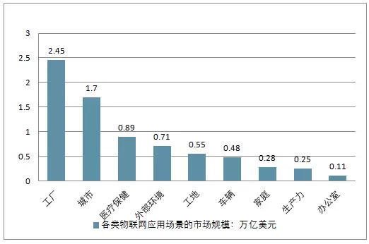 2025 年各类物联网应用场景的市场规模预测(单位:万亿美元)