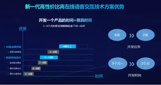 卢尧强调:“这项技术目前已深化成基于“芯片平台+驱动+OS+语音算法”的软硬件深度协同的一体化方案,并向产业链上下游开放。开发者无需集成适配调试,开箱即用。原来所需的UI应用开发、语音功能集成、ID及结构设计、系统驱动调试、硬件电路设计、硬件方案选型等6项固定任务,可减少至2项,如此常规5-9个月的研发周期也缩至40-60天,这对硬件研发及生产制造商将会带来极大优势。”