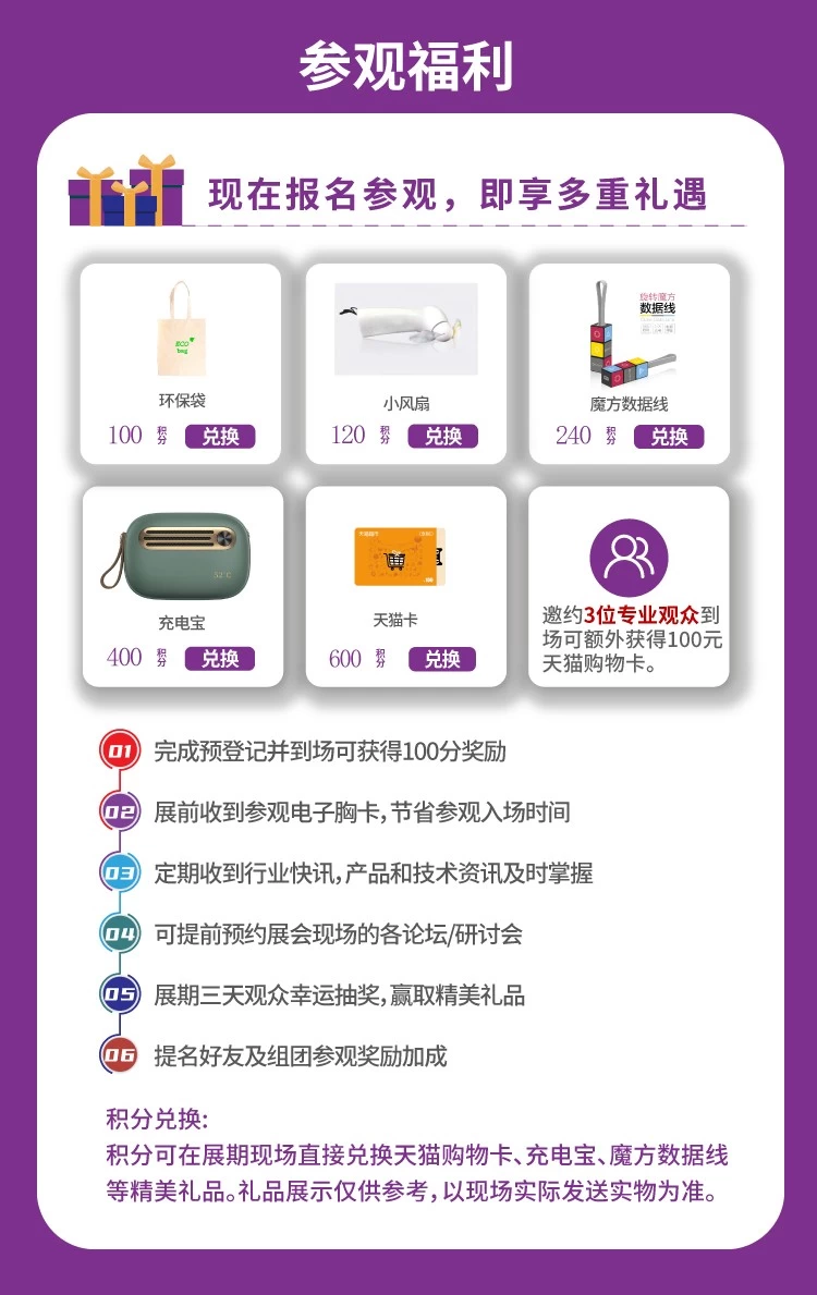 注:积分可在展期现场直接兑换天猫购物卡、充电宝等精美礼品。