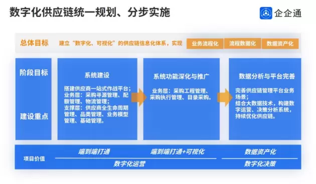 企企通根据他们的业务需求,为他们搭建全球的采购数字化协同平台,从预测到计划、还有后面的执行和交付协同,全流程数字化智能化管理,实现全球的品类统一,全球的资源共享,在线协同,使整个采购过程合规可控,发挥它最大价值。