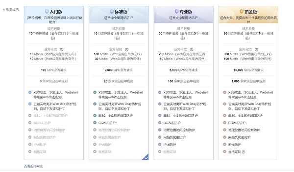 2.网站安全解决方案:包含企业主机安全HSS、Web应用防火墙WAF、DDoS高防AAD、云堡垒机CBH、数据库安全服务DBSS等。